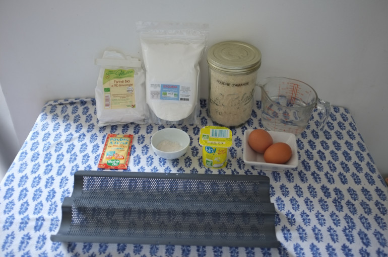 Les ingrédients pour la recette sans gluten de baguette de pain
