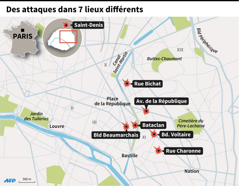 Les attaques à Paris se sont produites dans 7 lieux différents