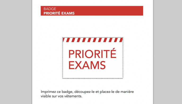 Sur son site, la SNCF propose en effet de télécharger un badge "priorité exams" à imprimer et afficher en évidence sur ses vêtements. "Ces autocollants leur permettront d’être identifiés par les autres voyageurs pour qu’ils puissent solidairement leur laisser la priorité dans les trains", explique l'entreprise. 150.000 badges seront par ailleurs distribués en gares lundi.