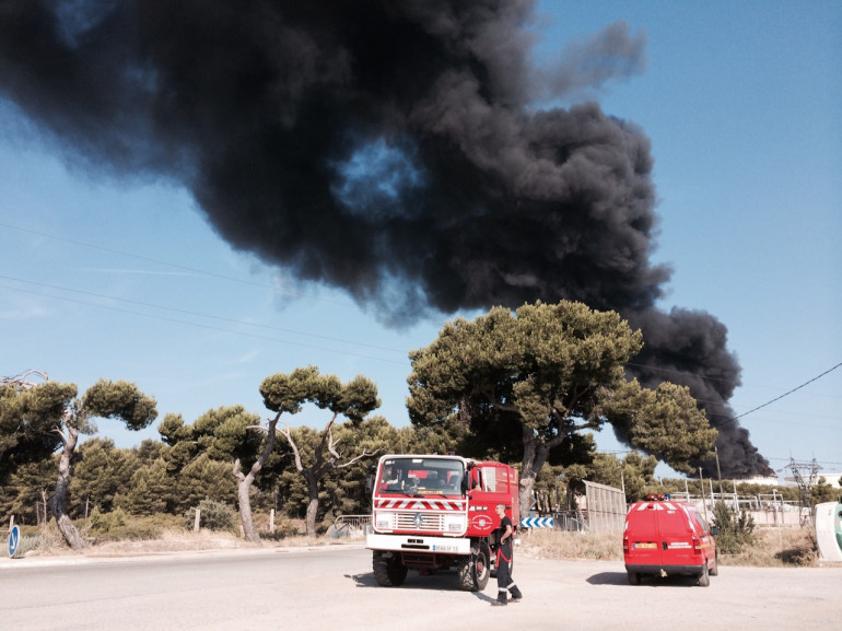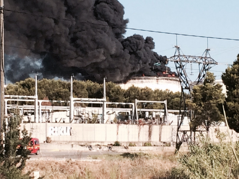 A l'approche du site, on distinguait une cuve en feu dont se dégageait un épais panache de fumée visible à plusieurs kilomètres. L'incendie s'est déclaré "sur le site pétrochimique de