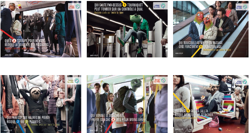 La communication passera de nouveau par l'utilisation des animaux qui servent d'illustration à la campagne. Un bestiaire auquel vont s'ajouter un troupeau d'éléphants qui bloquent le passage à la descente du métro. Ce sont 550 affiches, 700 fonds de rame métro et RER, 1.000 visuels répartis dans les mobiliers urbains, 950 affiches dans les bus et trams et 500 courtes vidéos diffusées sur les écrans numériflash qui serviront à faire passer le message de la prévention.