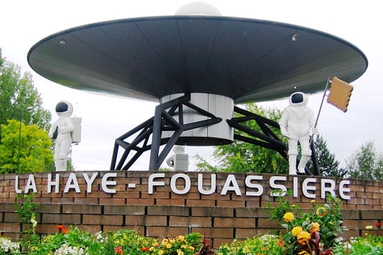Aujourd'hui, Matthieu, chauffeur routier, nous a proposé celui de La Haie-Fouassière, à côté de Nantes. Connue à l’international, Monsieur le Maire est très fier de cette œuvre créée par l'architecte de l'usine LU implantée non loin de là. Ce rond-point représente un soucoupe spatiale avec des astronautes posant le pied sur Terre et brandissant des gâteaux "petit beurre" en guise de drapeau...! L'idée maîtresse de l'architecte, résolument tournée vers l'avenir, était qu'on viendrait de l'univers pour chercher les spécialités de La Haye-Fouassière... Précisons que désormais, le rond-point est entouré d'un fossé et de barbelés pour protéger les cosmonautes qui ont fait l'objet de plusieurs "kidnappings" et plaisanteries.