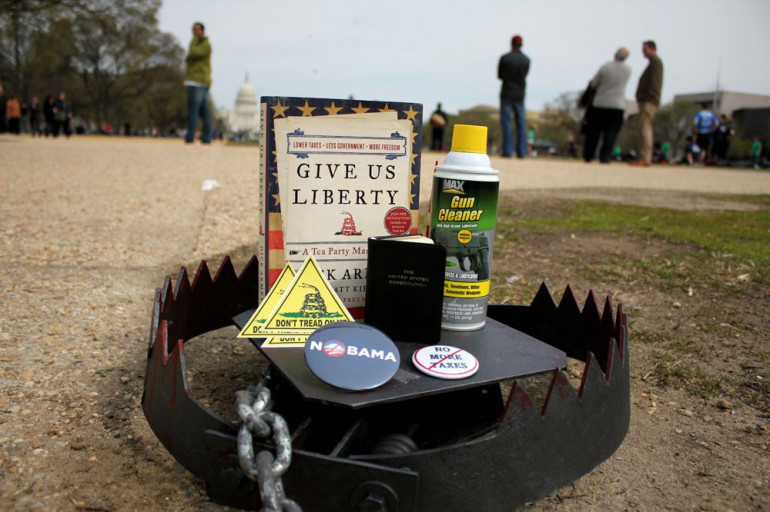Un manifeste, un produit pour nettoyer un fusil et des badges anti-impôts et anti-Obama devraient piéger un militant du Tea Party, tandis que des tickets de trains et un flacon de parfum "Drakkar noir" doivent appâter l'habitant de banlieue.