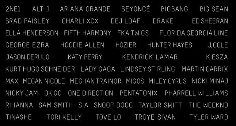 Pour la seconde fois après 2013, YouTube a organisé ses Music Awards, une remise de prix honorifiques destinés à récompenser les artistes les plus innovants et porteurs pour la première plateforme de partage de vidéos au monde. Contrairement à la précédente édition cependant, la cérémonie n'avait pas lieu physiquement, mais en ligne. Le 2 mars, le service a donc mis en ligne une vidéo récapitulant les 50 vainqueurs, des "artistes à suivre en 2015", comme l'explique le court texte qui l'accompagne. Dans le film de cinquante secondes, des extraits des clips qui ont fait le plus de clics cette année, du Stay High de Tove Lo au Dark Horse de Katy Perry en pensant par le controversé Anaconda de Nicky Minaj.