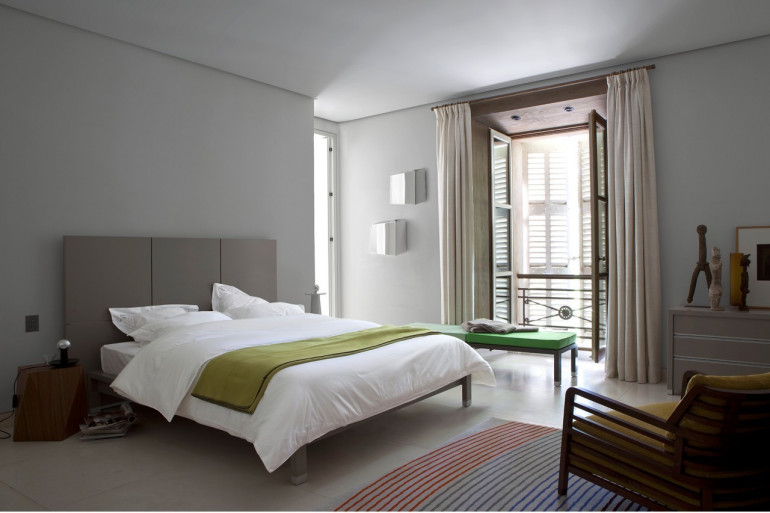 joli rideau. À shopper, par exemple un beau tissu chez Elitis. Le lit ne doit pas non plus se