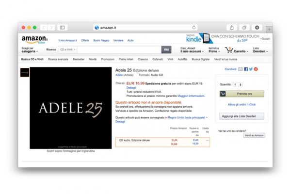 "25" d'Adele aurait fuité sur la plateforme italienne d'Amazon