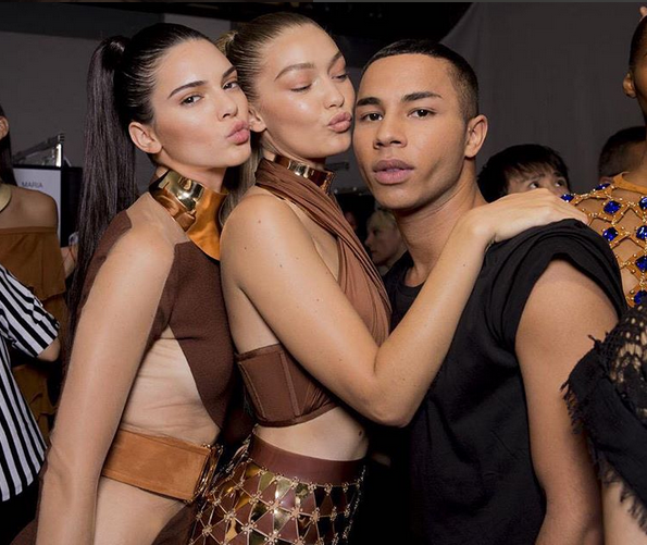 Kendall Jenner, Gigi Hadid et Olivier Rousteing au défilé Balmain