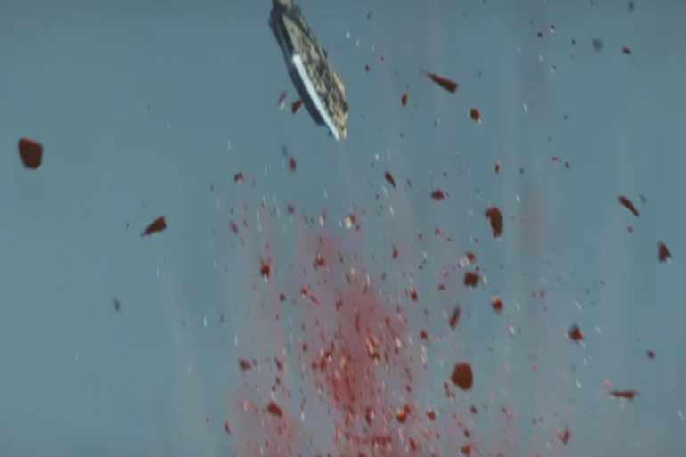 Dans la seconde bande-annonce de Star Wars 8, on voit le Faucon Millenium poursuivi par des chasseurs du Premier Ordre dans un sous-terrain de Crait. Dans ce nouveau trailer, le Faucon parvient à s'échapper des profondeurs de la planète. Les résidus de la roche rouge seraient pour certains fans des cristaux de Kyber qui permettent de construire les sabres laser des Jedi. Dans tous les cas, c'est bien Chewbacca qui pilote d'une main de Wookie le vaisseau de feu Han Solo.