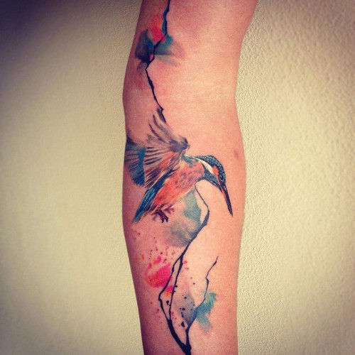 Décidément, les tatoueurs semblent inspirés par les œuvres picturales. Apparu en 2013, cette tendance reprend les bases de la peinture aquarelle, les couleurs pastel s'affranchissent des lignes aériennes tracées sur la peau. Petit bémol, ces tatouages réalisés avec des couleurs claires résistent moins à l'épreuve du temps et nécessitent souvent plusieurs retouches.
