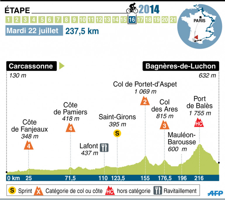 Infographie Tour de France 2014 : le profil de la 16e étape