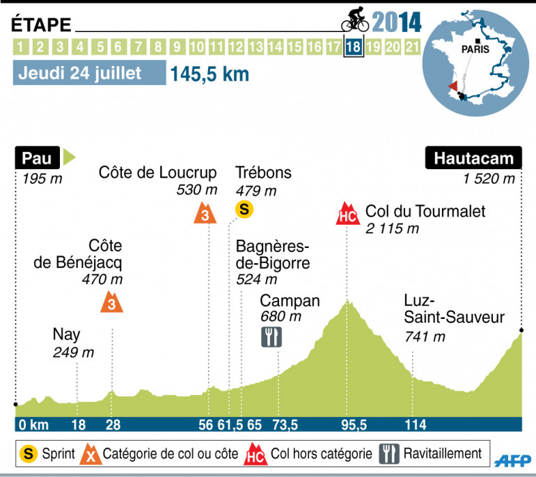 24 juillet : 18e étape, Pau - Hautacam, 145,5 km