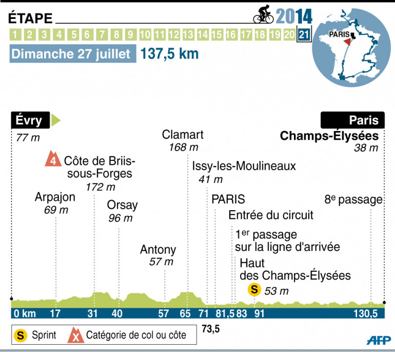 27 juillet : 21e étape, Evry - Paris Champs-Elysées, 137,5 km