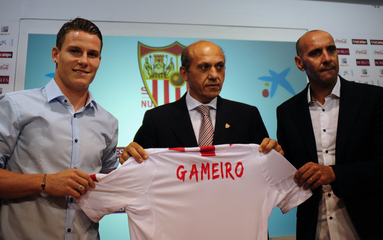 Kevin Gameiro, le président de Séville Del Nido et "Monchi" en juillet 2013