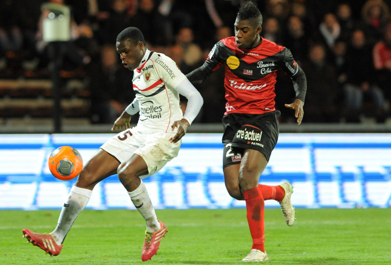 Mana Dembélé, sous les couleurs de Guingamp face au niçois Romain Genevois