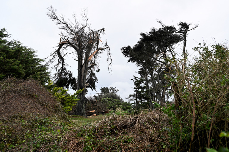 Des arbres détruits après le passage de la tempête Ciaran à Porspoder (Finistère)