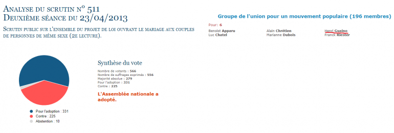 Finalement, il a voté pour le mariage entre personnes de même sexe ! Il se serait trompé de bouton sur son boitier électronique !