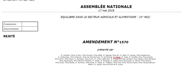 Ci-dessous, vous pouvez voir que le député LREM Jean-Marie Fiévet a cosigné l'amendement n°1570 sur le glyphosate.