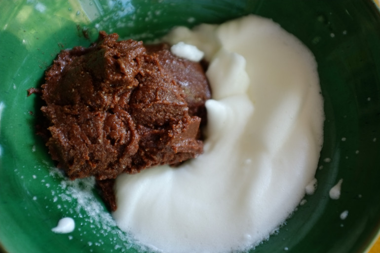 Mélanger les blancs d'œufs à la pâte au chocolat