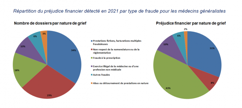 Les médecins généralistes sont aussi concernés par les fraudes. Sur les 57.000 professionnels généralistes, l’Assurance Maladie évalue ces préjudices à environ 3-3,5% des dépenses. Cette fraude représenterait entre 185 et 215 millions d’euros. Une grande partie du nombre de fraudes concerne des prestations fictives, des actes qui n’ont jamais ou lieu ou des surfacturations. On parle également de médicaments prescrits alors qu’ils n’ont été délivrés à aucun patient.