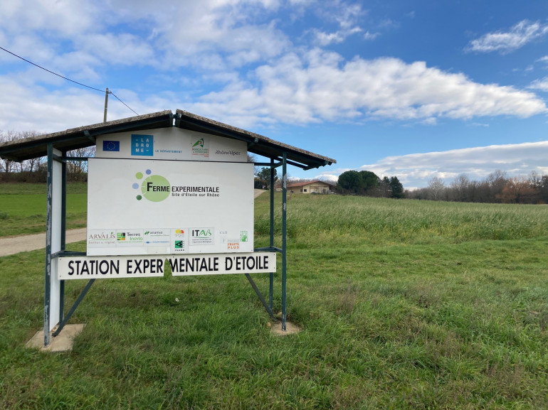 La ferme expérimentale d'Etoile sur Rhône. Les panneaux solaires protègent les arbres des aléas climatiques et produisent de l'electricité