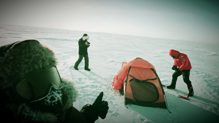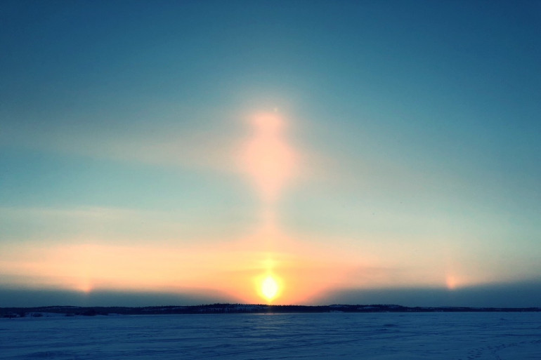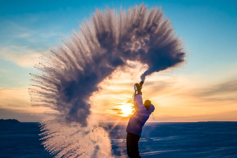 Dans le grand nord du Canada, l'air est tellement froid que l'eau bouillante se cristallise immédiatement lorsqu'elle est lancée en l'air. En ce moment, les températures sont remontées et je ne sens plus le froid, mon corps est habitué. Il ne fait que moins 30 degrés, c'est une canicule face aux -58 que j'ai ressentis au début de l'expédition.