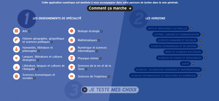 À l'inverse, si l'élève a déjà une idée des études qu'il veut faire, le site lui permet donc de s'assurer que ses choix de spécialités sont cohérents avec son projet.