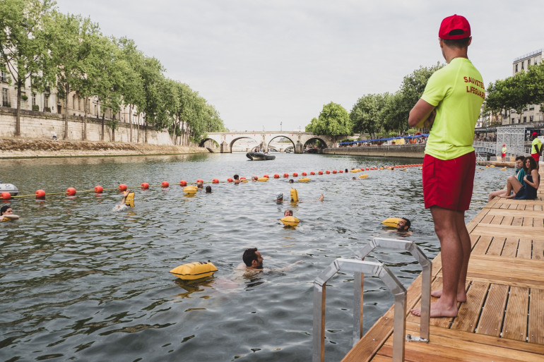 Les premiers baigneurs étaient très bien encadrés puisque des maîtres-nageurs étaient présents, tout comme des bateaux pneumatiques de la préfecture de police de Paris qui étaient postés autour du périmètre de sécurité.