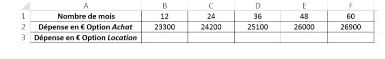 1. Montrer qu’avec l’option Achat la dépense à la fin de la première année est de 23 300 €.
