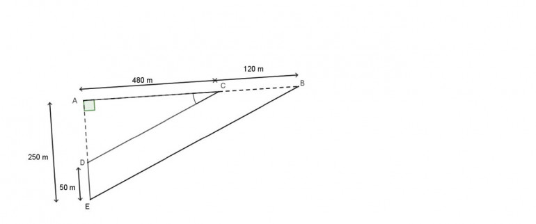 → 𝐴𝐷 = 𝐴𝐸 − 𝐷𝐸 = 250 − 50 = 200𝑚