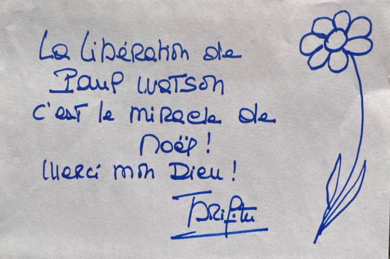 Message de Brigitte Bardot à l'issue de la libération de Paul Watson
