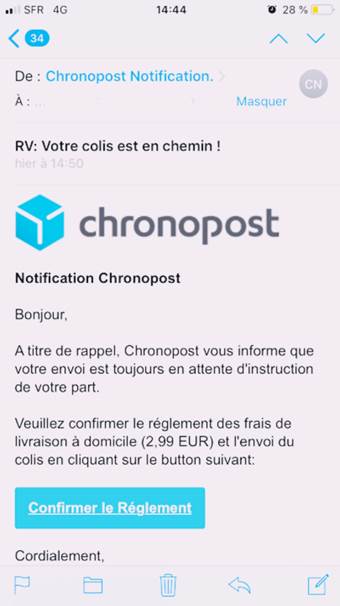 Les experts de VadeSecure disent avoir constaté une augmentation des campagnes de phishing visant les professionnels et les particuliers. Ces derniers sont contactés par des emails et SMS envoyés par des escrocs qui se font passer pour Chronopost, DHL ou UPS au motif d'un problème de livraison.