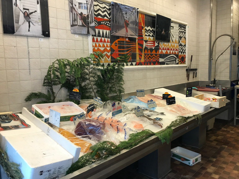 Les étals de poissonnerie Lacroix, dans le XIe arrondissement de Paris