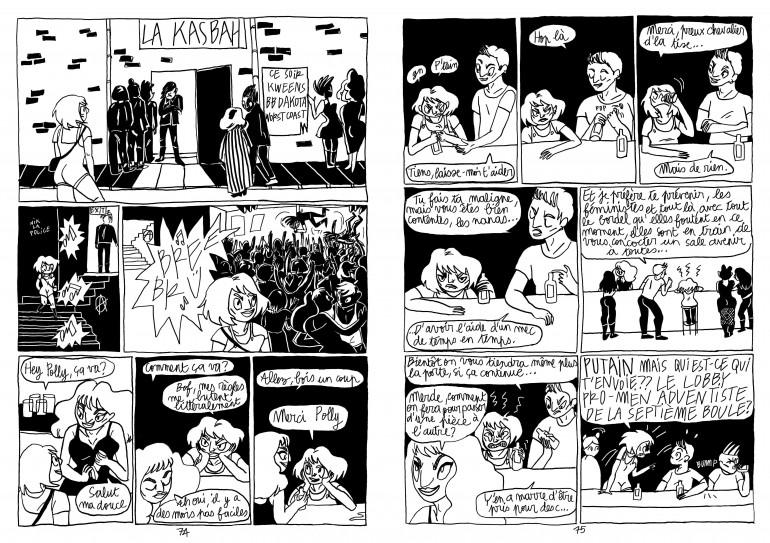 "Je l'ai fait toute seule, imprimée toute seule et je l'ai vendu dans des festivals féministes, queer ou LGBTQ+", raconte la dessinatrice. "La plupart des personnages sont des copines à moi, même si leurs histoires sont un peu déguisées".