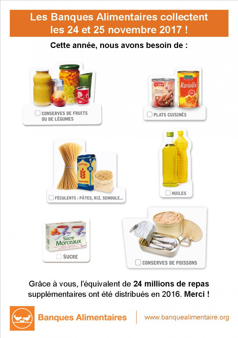 La collecte des Banques Alimentaires le 2' et 25 novembre 2017