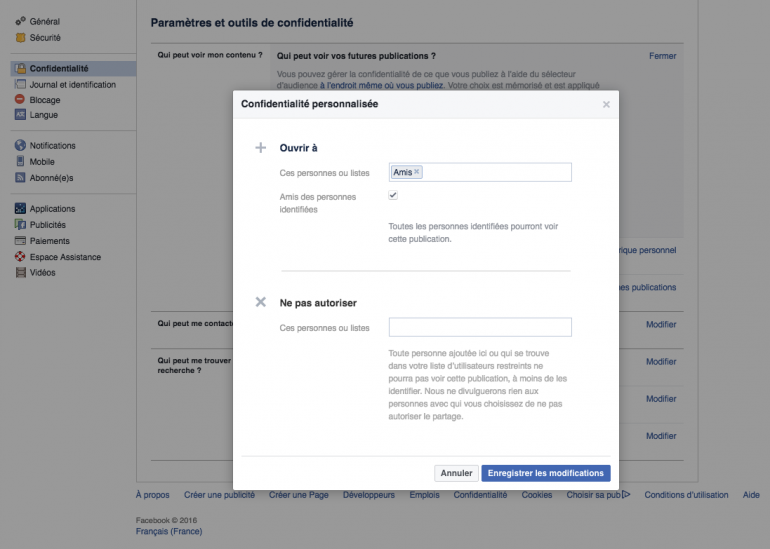 Vous pouvez choisir de montrer vos contenus à vos amis, sauf certains d'entre eux