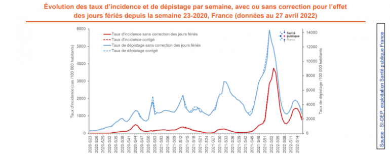 Les taux d'incidence et de dépistage à la Covid-19 en France au 28 avril 2022