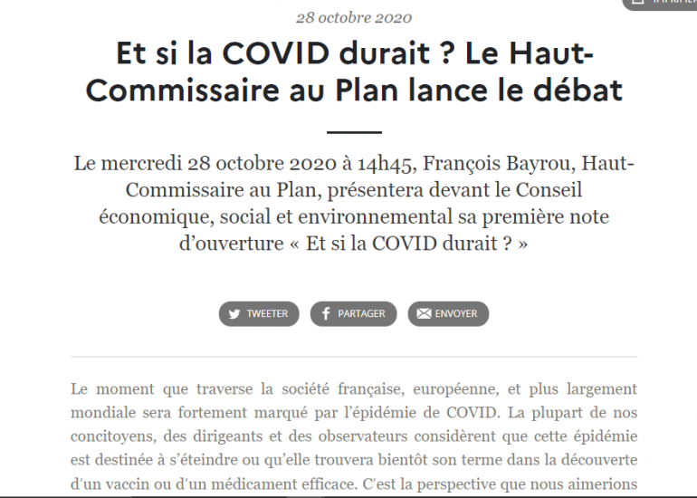 La Haut-Commissariat a adressé une note au gouvernement le 28 octobre intitulée "Et si la Covid durait ?"