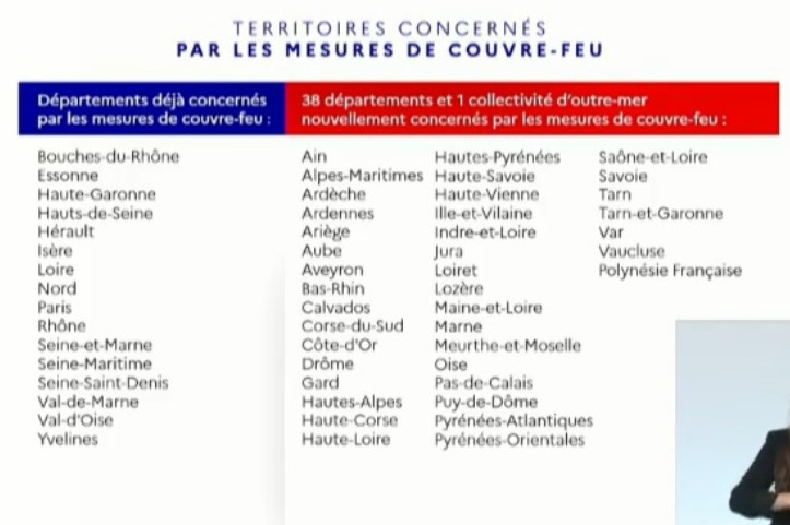 La liste des départements où le couvre-feu s'applique à partir du 24 octobre