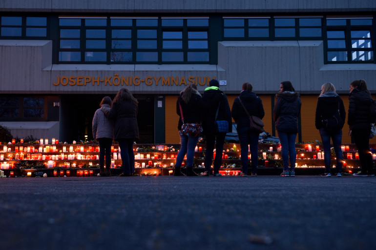 Devant leur établissement, le Joseph-König-Gymnasium situé à Haltern Am See, l'émotion est immense depuis le 24 mars et le moment où la nouvelle de leur décès est parvenue. Depuis, des groupes d'élèves accompagnés de leurs professeurs se succèdent devant le tapis de bougies, qui brûlent en hommage aux victimes. Les joues couvertes de larmes, des jeunes filles se prennent dans les bras, tentent de se réconforter.