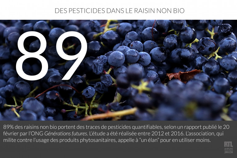 89% des raisins non bio contiennent des traces de pesticides quantifiables.