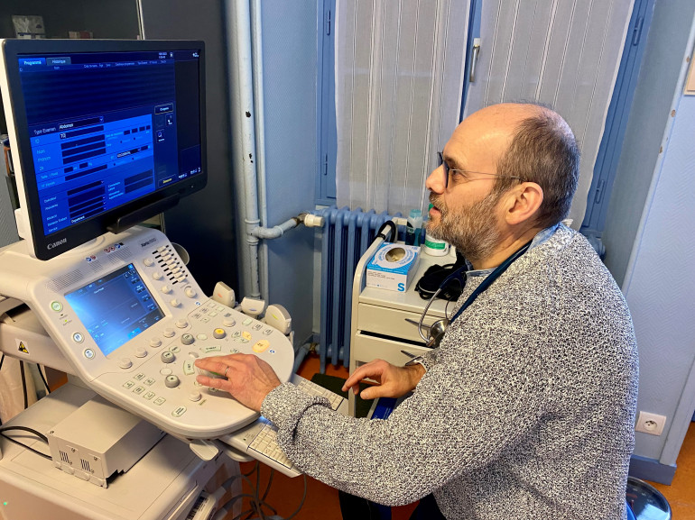 "Je fais de la dermato, de la gynéco avec l'échographe que vous voyez au fond du cabinet. Je suis formé également à des actes d'ophtalmo", souligne-t-il.
