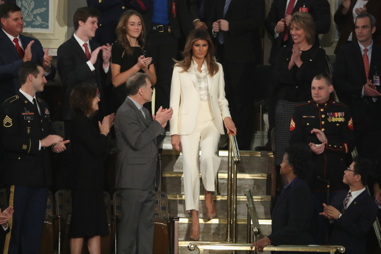 Pour cette édition 2018, Melania Trump a d'ailleurs elle aussi adopté ce dress code blanc, contrastant avec les élues démocrates. Dans la presse américaine, on s'interroge sur ce choix, d'autant plus que la Première dame a brisé le protocole de l'événement, arrivant dans un autre véhicule que celui de son époux, selon CNN.