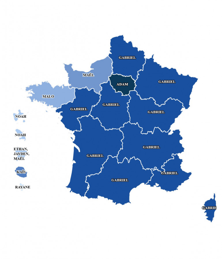 Comme tous les ans, l'Insee a publié son classement des prénoms les plus donnés en 2024, ce mercredi 9 juillet. Louise et Gabriel sont les deux prénoms les plus populaires en France. Louise est le prénom le plus attribué dans quatre régions métropolitaines et Gabriel dans dix régions métropolitaines, selon les données officielles de l'Insee.