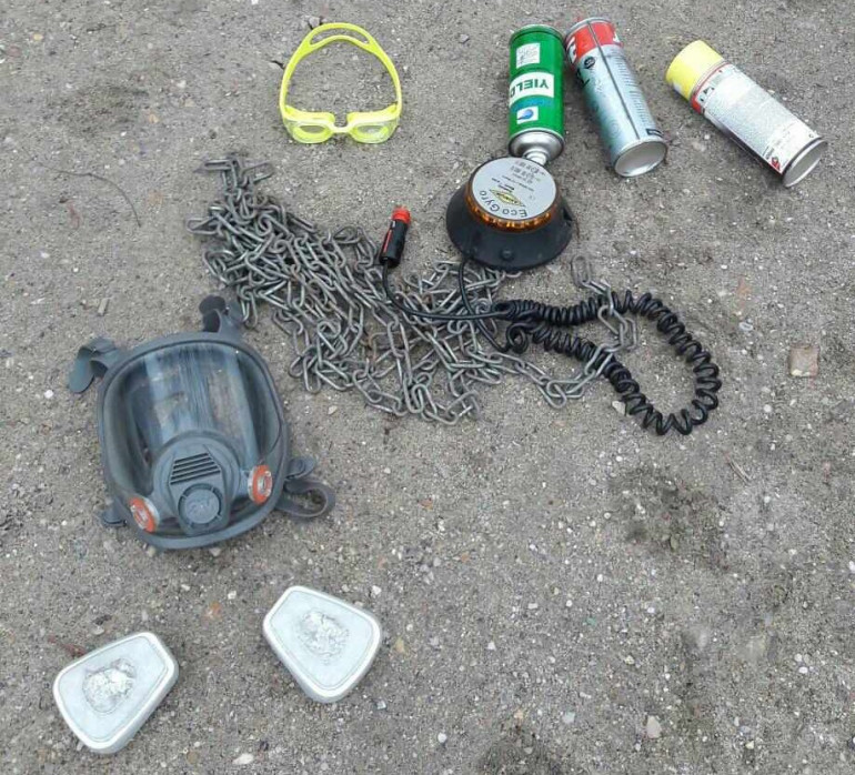 Des objets saisis lors d'une interpellation en marge de l'acte 9 des "gilets jaunes"