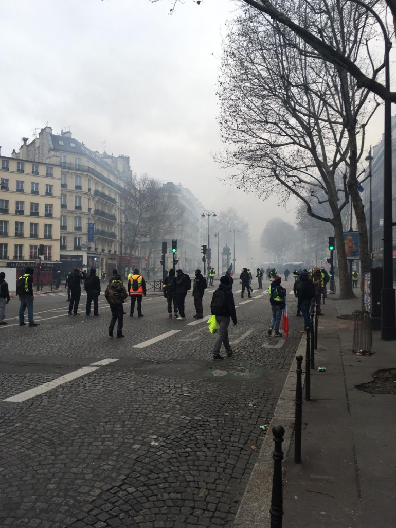 15h26 - Boulevard Haussmann à Paris, dans le quartier des grands magasins, un groupe de CRS tente de pourchasser plusieurs centaines de gilets jaunes non loin du parc Monceau. Un véhicule a été incendié place Rio de Janeiro, à proximité du même parc. Les pompiers ont pu intervenir. Un magasin Monoprix a été totalement saccagé.