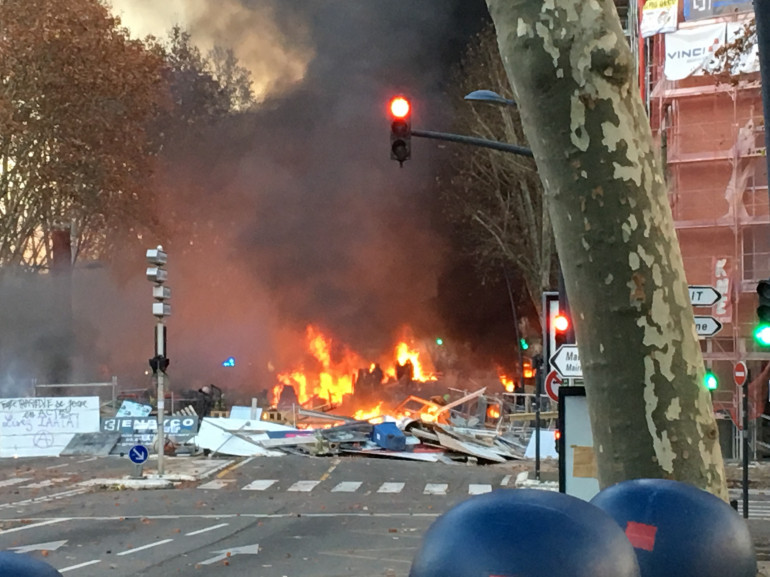 À Toulouse, un chantier a été pillé pour ériger une grande barricade, samedi 8 décembre 2018