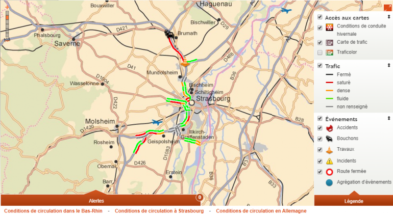 La circulation aux alentours de Strasbourg jeudi 5 décembre à 7h30