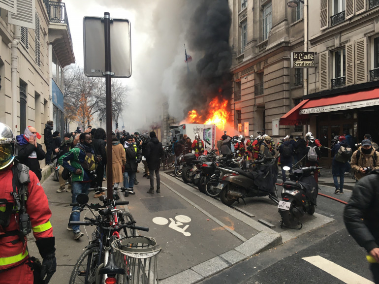 15h41 - De premières tensions et des incidents ont éclaté près du cortège parisien peu après 15 heures. Un début d'incendie a été observé devant la maison des syndicats place de la République.