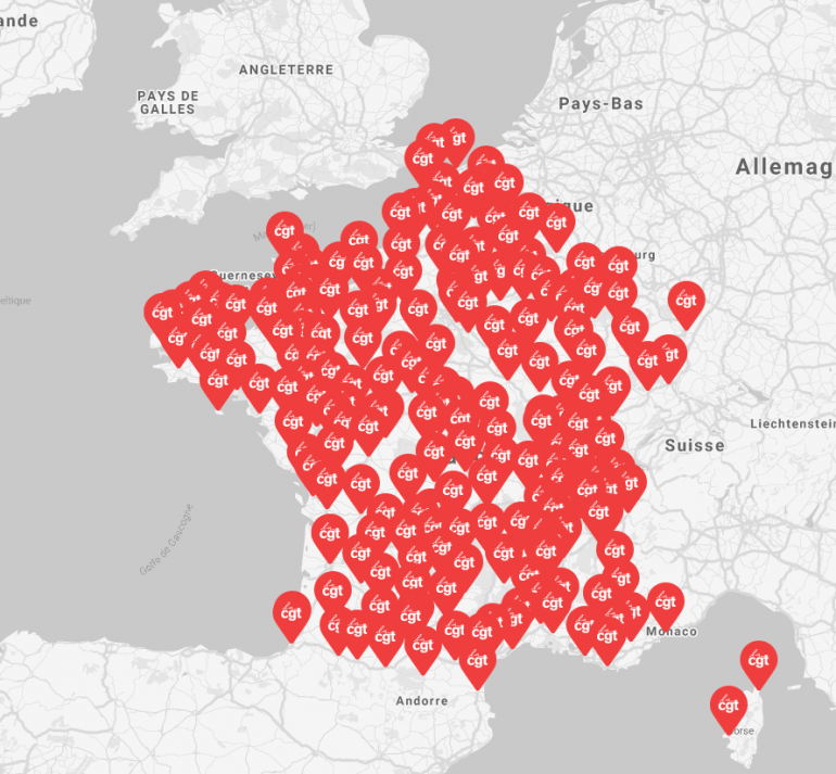 Carte des manifestations CGT prévues en France ce jeudi 5 décembre