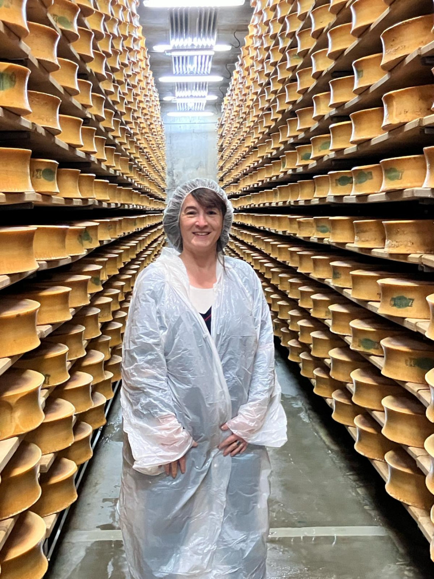 Marina Giraudeau dans une dameuse électrique à Val Cenis.